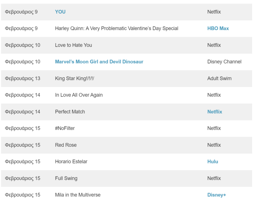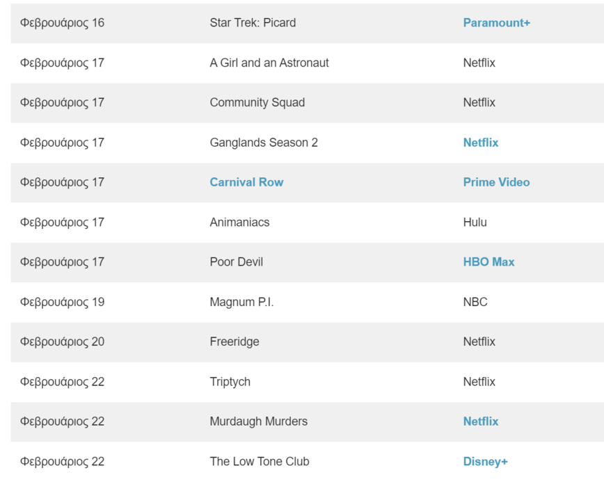 Ας δούμε αναλυτικά τη λίστα με τις σειρές που έρχονται τον Φεβρουάριο και δημοσιεύει το lordoftheseries.gr