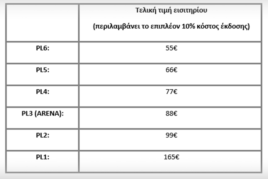 Η πώληση των εισιτηρίων ΑΜΕΑ θα διεξαχθεί αποκλειστικά από το τηλεφωνικό κέντρο της Ticketmaster (2108938111) και θα στοιχίζουν 88€ (περιλαμβάνει το επιπλέον 10% κόστος έκδοσης).