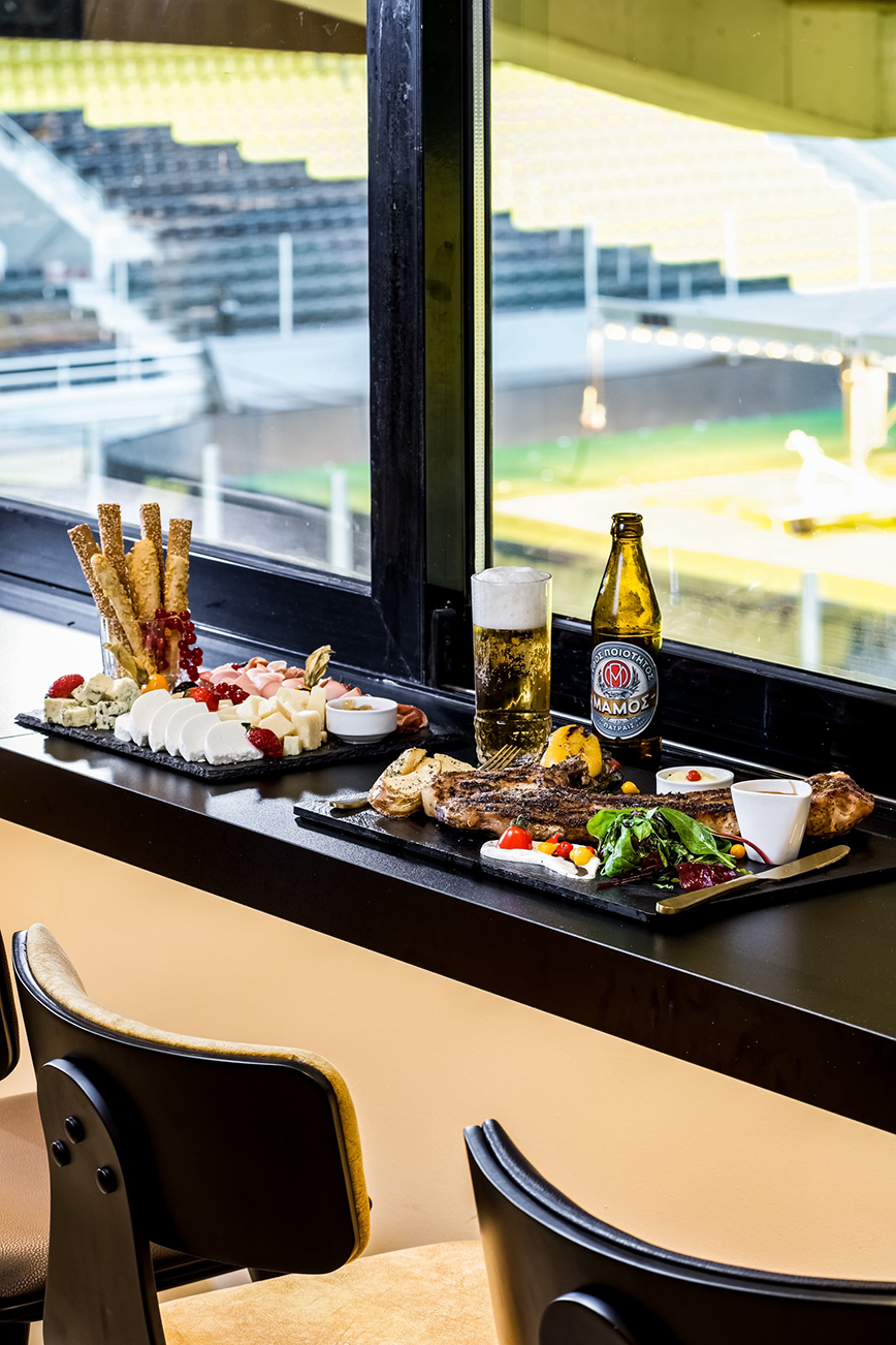 Το εστιατόριο Βυζαντινό χωρητικότητας 1000 τ.μ και πανοραμική θέα στον αγωνιστικό χώρο είναι ανοιχτό Πέμπτη έως Παρασκευή 18.00 – 24.00, Σάββατο – Κυριακή 12.00 – 24.00 καθώς και τις ημέρες των αγώνων.