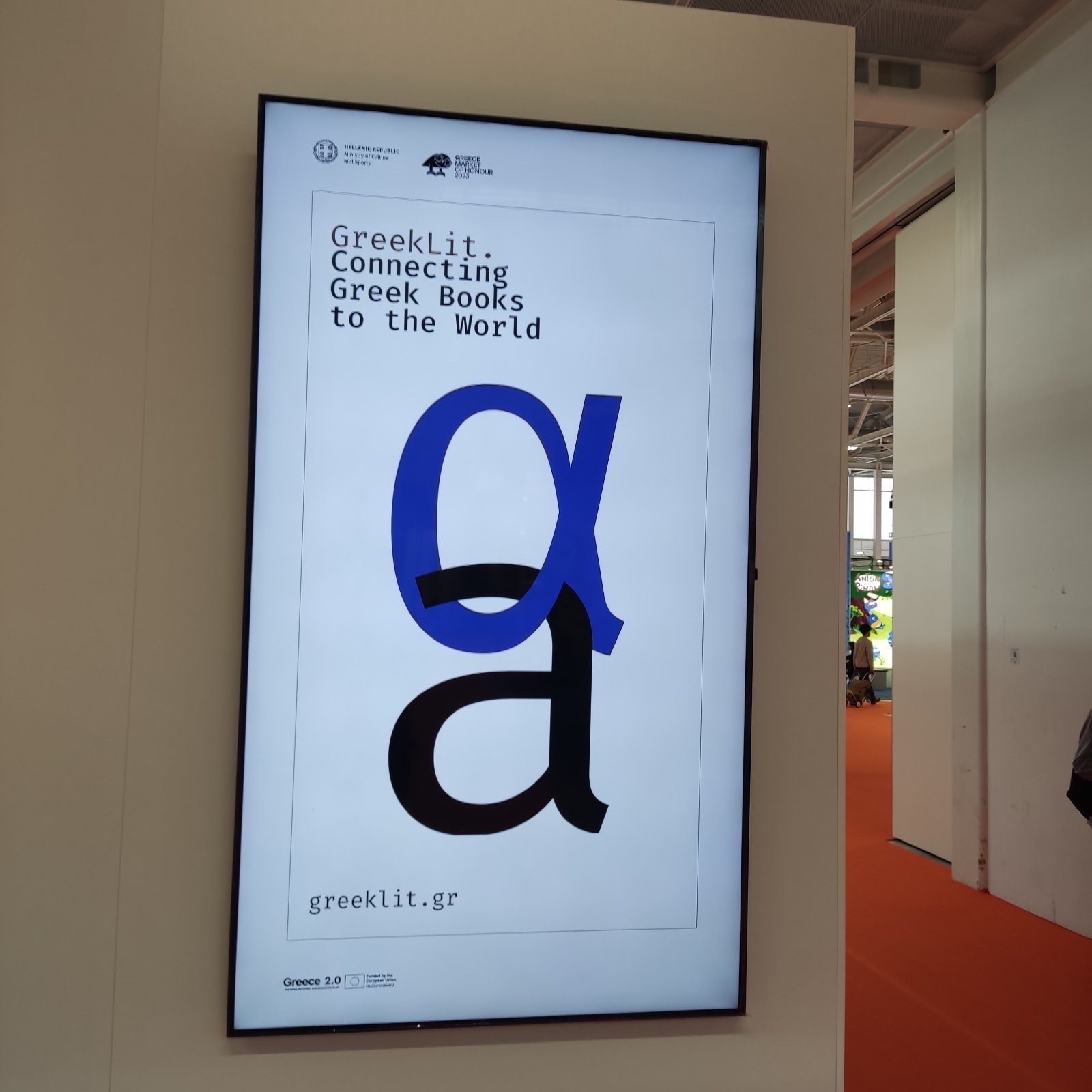 Στο ελληνικό περίπτερο μεταξύ άλλων παρουσιάζονται εργαλεία και πρωτοβουλίες που αναπτύχθηκαν με σκοπό την υποστήριξη και την εξωστρέφεια της ελληνικής λογοτεχνίας, όπως το πρόγραμμα επιχορήγησης μεταφράσεων GreekLit το οποίο έχει τεθεί σε λειτουργία από το 2021.