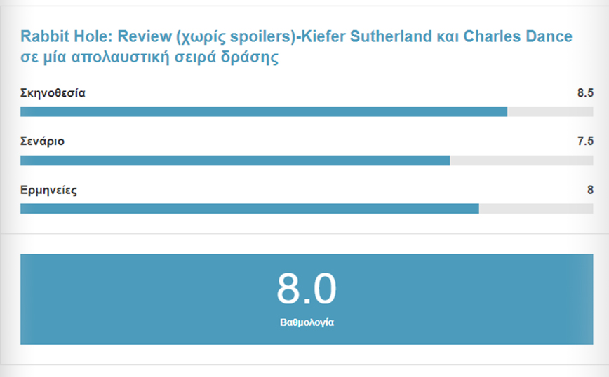 Κατά την άποψη μου, το Rabbit Hole είναι μία απολαυστική σειρά δράσης, που δεν σταματάει να σε εκπλήσσει με τις ανατροπές του και με τις πολύ δυνατές ερμηνείες του!