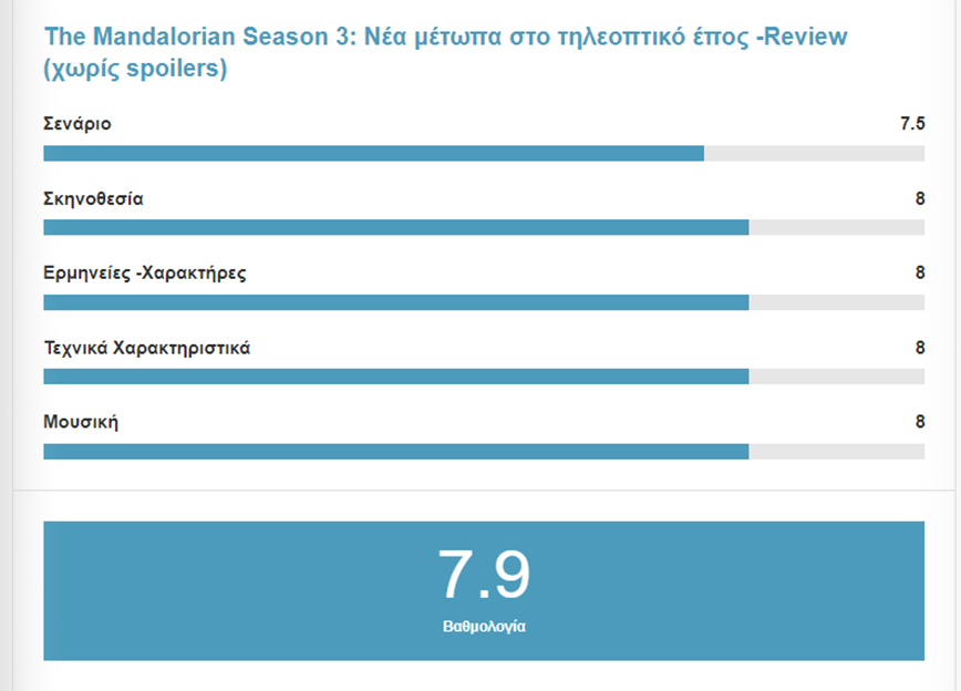 Τελική Ετυμηγορία: Προς τιμήν του, φαίνεται ότι οι δημιουργοί του The Mandalorian έφτασαν πολύ μακριά στην 3η σεζόν, χρησιμοποιώντας το φινάλε ως μια ήπια επαναφορά για τον Din Djarin και τον Grogu, με τον Grogu να είναι πλέον επίσημα μαθητευόμενος του και τον Din Djarin να επιστρέφει στην παλιά του δουλειά, ως κυνηγός επικηρυγμένων. Αλλά μετά τη στροφή σε απειλητικές καταστροφές και αυτοκρατορικές διαστημικές μάχες, ανοίγουν μέτωπα με πολλά ρίσκα. Το Τhe Mandalorian μπορεί να έχει γίνει πολύ μεγάλο για τον Mando, και ο Favreau & Co. έχουν πολύ δουλειά μπροστά τους για να καταλάβουν τι σημαίνει αυτό για το μέλλον του franchise…