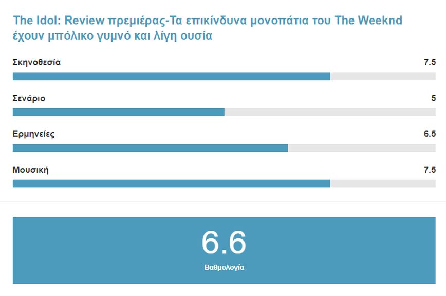 Η αλήθεια είναι βέβαια ότι μέχρι στιγμής το The Idol έχει απασχολήσει για τους λάθους λόγους, δηλαδή την τοξικότητα που φαίνεται πως επικρατούσε στα γυρίσματα. Και μάλλον συνεχίζει να απασχολεί για τους λάθους λόγους μετά την κυκλοφορία του πρώτου επεισοδίου.