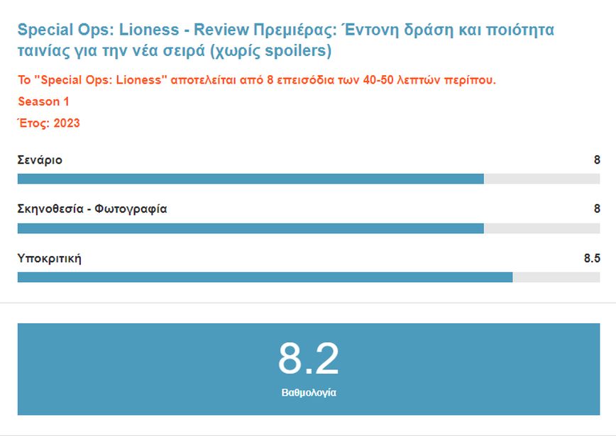 Η πολυαναμενόμενη σειρά της Paramount+, «Special Ops: Lioness» έρχεται και θα κάνει πρεμέρα με διπλό επεισόδιο. Η υπογραφή του δημιουργού του Yellowstone και του Tulsa King, Taylor Sheridan αποτελεί «σφραγίδα» για το οτι η σειρά θα καταφέρει να κάνει επιτυχία.