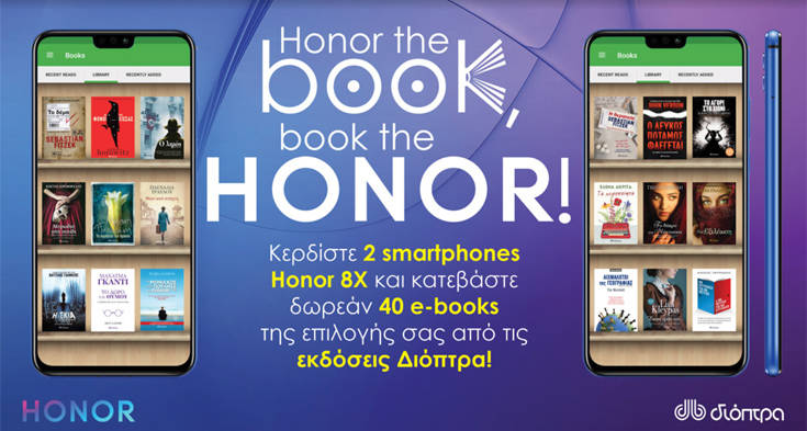 Η HONOR και οι Εκδόσεις Διόπτρα πραγματοποιούν τον μεγάλο διαγωνισμό HONOR the book, book the HONOR, την πρώτη οργανωμένη δράση ανάμεσα σε ένα Smartphone Brand κι έναν Εκδοτικό Οίκο στην Ελλάδα.