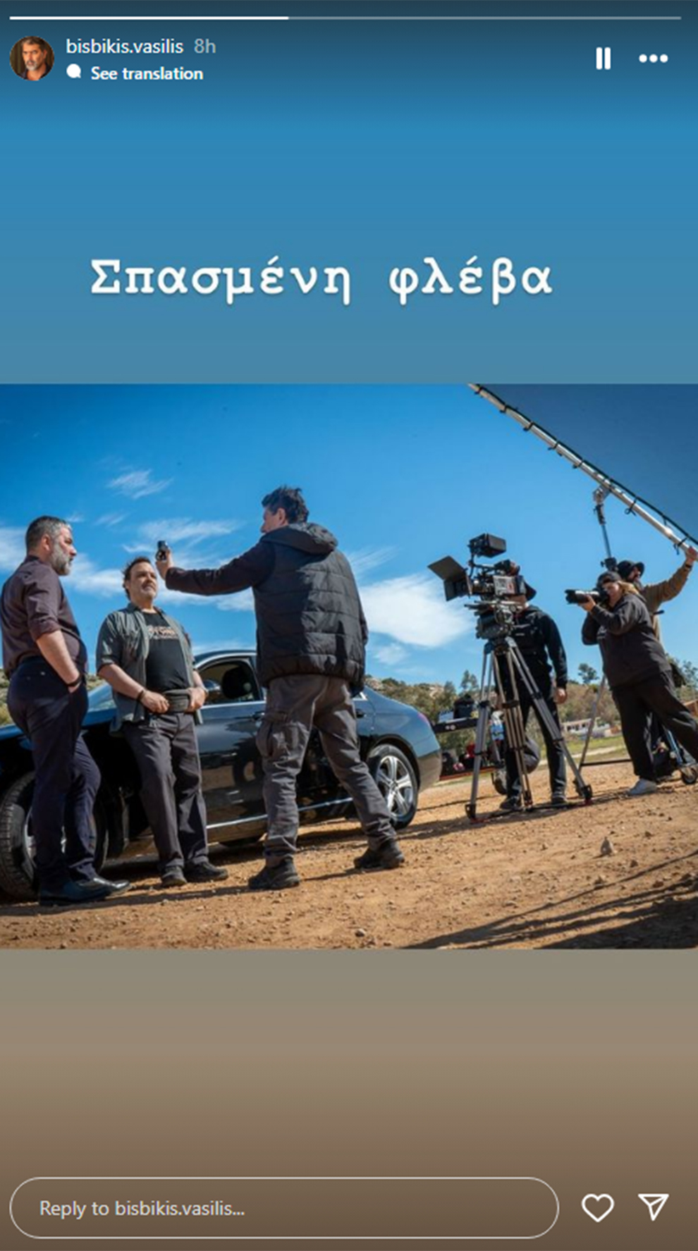 Σε story, ανάρτησε ένα στιγμιότυπο, με τον ίδιο να παίζει σε μια σκηνή, μαζί με συνάδελφό του, ενώ ο Γιάννης Οικονομίδης τους δίνει οδηγίες.