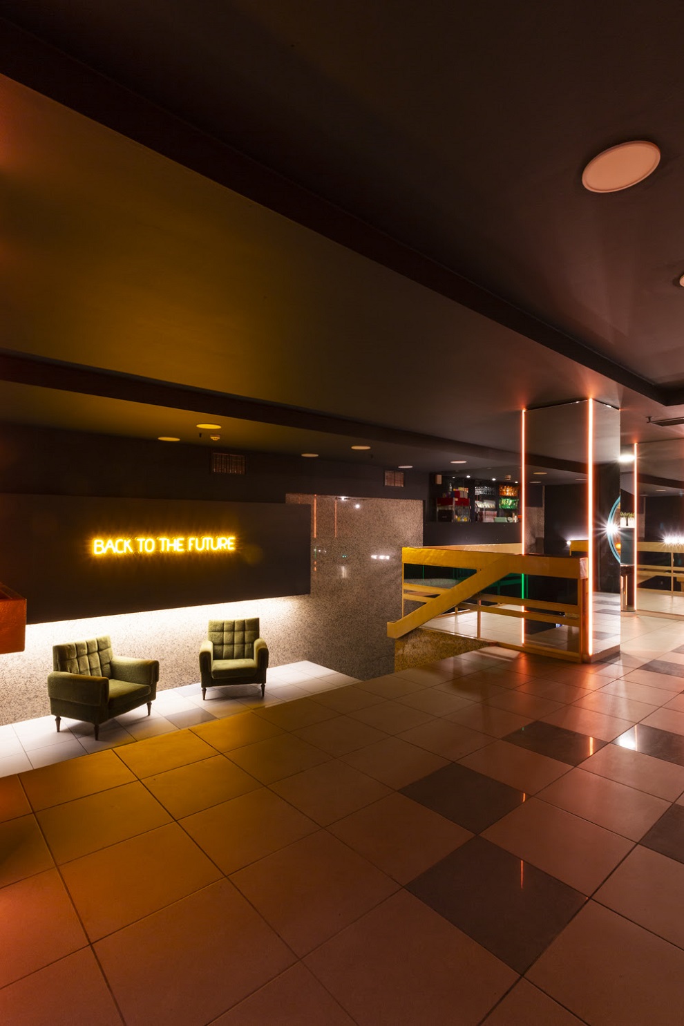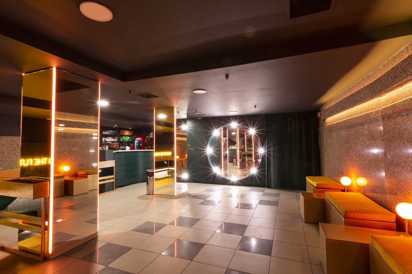 Το πορτοκαλί έχει την τιμητική του προσδίδοντας μια ζεστασιά στον χώρο, με το πράσινο να έρχεται σε μια γλυκιά αντίθεση. Τριγύρω υπάρχουν καθρέφτες και στην άκρη βρίσκεται το μίνιμαλ, μοντέρνο μπαρ. Ο χώρος υποδοχής θα σε εντυπωσιάσει και θα περάσει ευχάριστα η ώρα μέχρι να ξεκινήσει η ταινία.