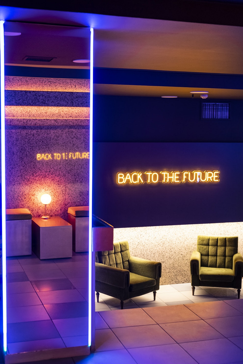 Κατεβαίνοντας τα σκαλιά για την αίθουσα μπροστά σου κρέμεται στον τοίχο η επιγραφή «Back to the future». Αμέσως σκέφτηκα την θρυλική ταινία «Επιστροφή στο μέλλον» της δεκαετίας του ’80, κάνοντας συνειρμούς με την επιστροφή του ιστορικού σινεμά στη νέα εποχή, αλλά και στις καλτ και κλασικές ταινίες που περιλαμβάνονται στο πρόγραμμα του σινεμά.