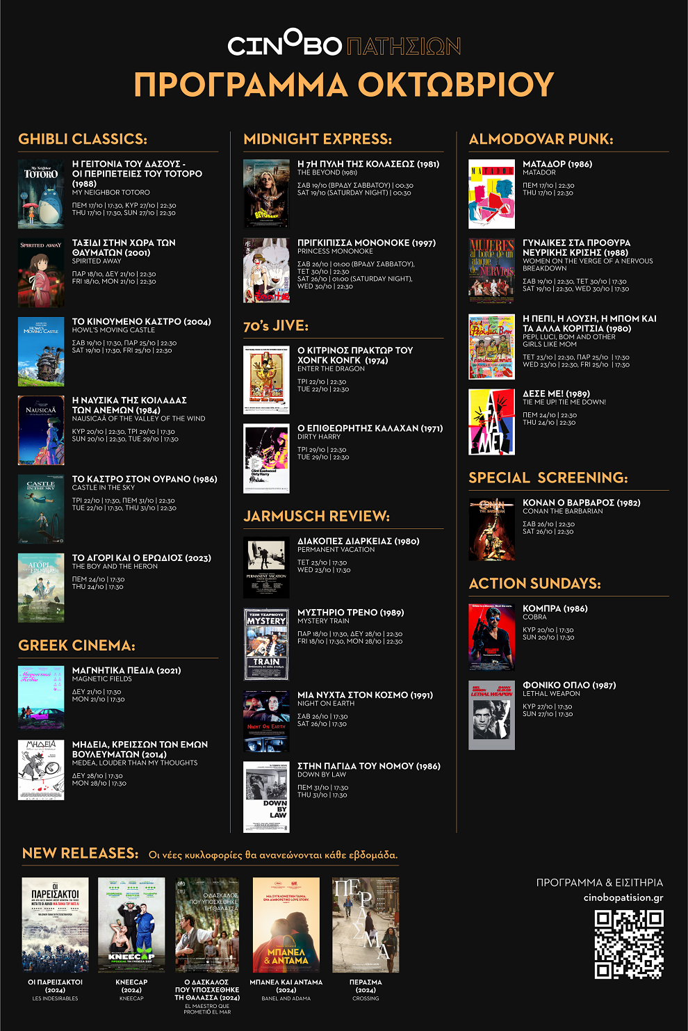 Με τον σχεδιασμό, λοιπόν, την επιμέλεια και την υποστήριξη του Cinobo και πρόγραμμα του Άκη Καπράνου, του curator πίσω από το θρυλικό Midnight Express, το Cinobo Πατησίων μεταμορφώνεται στο απόλυτο ανεξάρτητο movie theatre αλλά και σε αποκλειστικό σπίτι του Midnight Express.