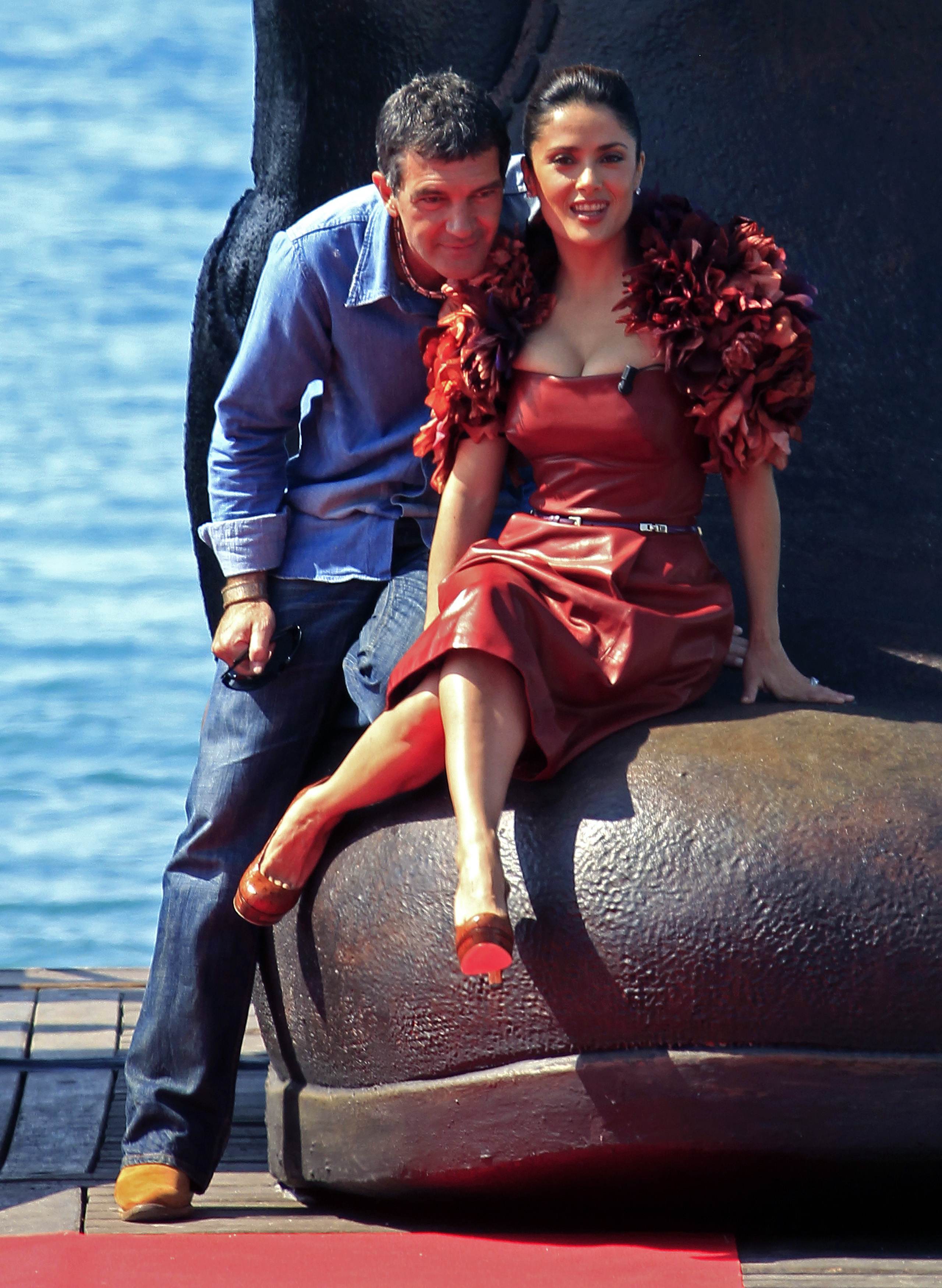 Από τις πρώτες αφίξεις στο κόκκινο χαλί του Φεστιβάλ των Καννών ήταν ο Αντόνιο Μπαντέρας και η Σάλμα Χάγιεκ που δανείζουν τη φωνή τους στην ταινία «Puss In Boots» με πρωταγωνιστή το Γάτο Σπιρουνάτο, φίλο του Σρεκ.