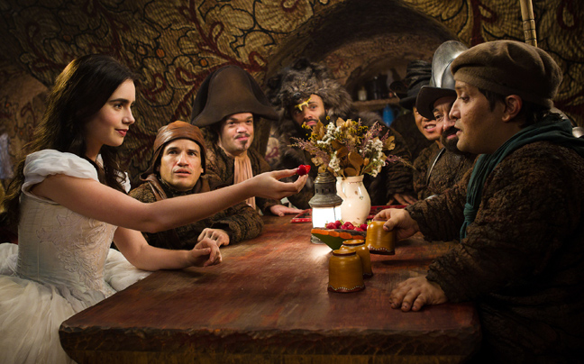 Δίπλα τους η Χιονάτη μετατρέπεται σε μια γενναία νεαρή γυναίκα αποφασισμένη να σώσει τη χώρα της από τη βασίλισσα. Με την υποστήριξη των νέων φίλων της, παλεύει να κερδίσει ξανά τη θέση της στο βασίλειο και την καρδιά του πρίγκιπα, σε αυτή τη μαγική και κωμική περιπέτεια που θα κλέψει τις καρδιές και τη φαντασία του κοινού σε όλο τον κόσμο.