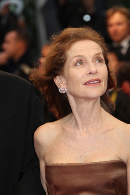 Isabelle Huppert, η Γαλλίδα ηθοποιός, φόρεσε ένα μπρασελέ από λευκό χρυσό με χρωματιστά διαμάντια και ένα ζευγάρι σκουλαρίκια από πλατίνα με διαμάντια.