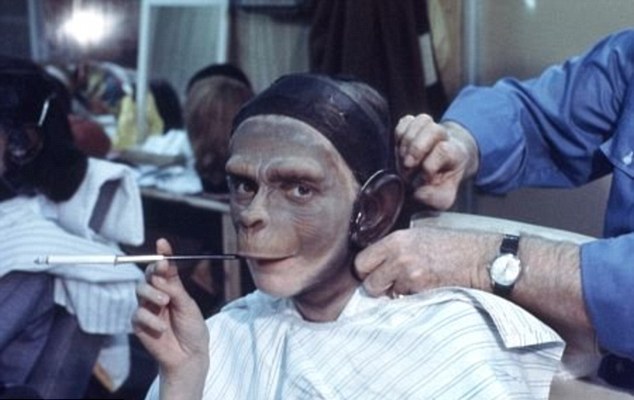 Οι σκηνές γυρίστηκαν το 1967 στην Καλιφόρνια. Ηθοποιοί-«πίθηκοι» καπνίζουν και χαλαρώνουν διαβάζοντας «Daily Mail», ενώ άλλοι προετοιμάζονται στο χώρο του μακιγιάζ…