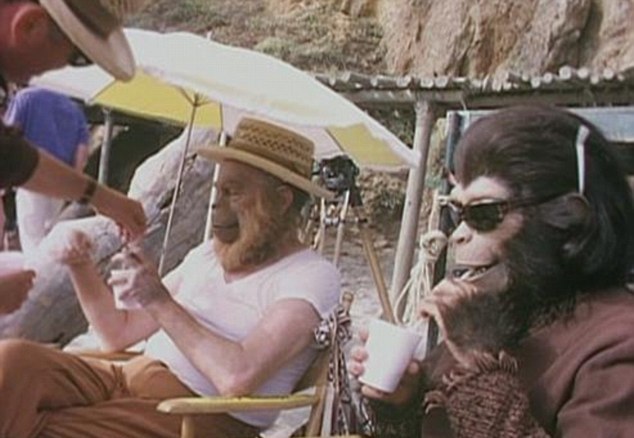 Οι πρωταγωνιστές της ταινίας «Ο πλανήτης των πιθήκων» που βγήκε το 1968 ξεκουράζονται στα διαλείμματα των γυρισμάτων και το κοινό έχει την ευκαιρία να δει τι επικρατούσε πίσω από τις κάμερες της ταινίας επιστημονικής φαντασίας που ξεπέρασε κάθε προηγούμενο για την εποχή της.