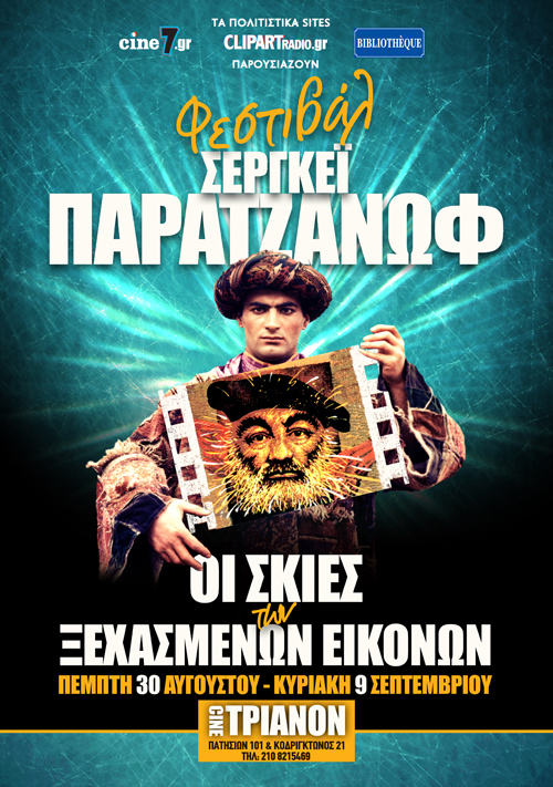Ακολουθώντας τις «Σκιές των ξεχασμένων εικόνων», τα ποιητικά πλάνα του Ρώσου σκηνοθέτη Σεργκέι Παρατζάνωφ «απαγγέλλονται» κινηματογραφικά με την προβολή των ταινιών του, στο Φεστιβάλ που θα διεξαχθεί στο σινέ Τριανόν, από τις 30 Αυγούστου έως τις 9 Σεπτεμβρίου.
