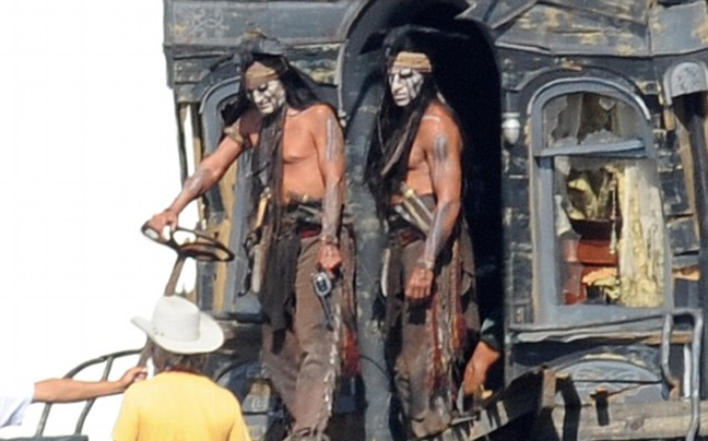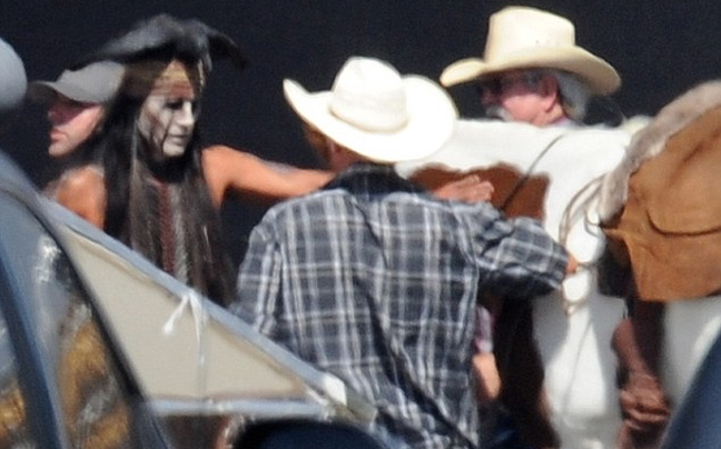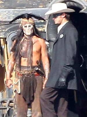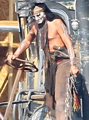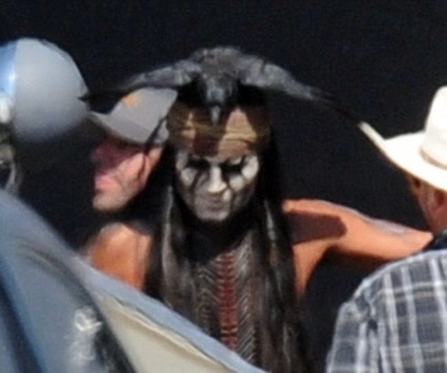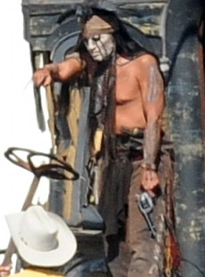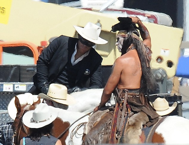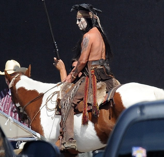 Τις δεξιότητές του στη… σέλα δείχνει ο ηθοποιός Johnny Depp στα γυρίσματα της νέας του ταινίας «The Lone Ranger», στο Λος Άντζελες , όπου υποδύεται τον Ινδιάνο Τόντο.
