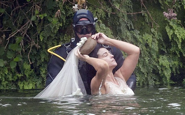 Η Monica Bellucci εμφανίζεται σε μία σκηνή να κολυμπάει σε λίμνη στη Βοσνία φορώντας ένα νυφικό ενώ το συνεργείο περιελάμβανε ακόμη και δύτες που βρίσκονταν κοντά στην ηθοποιό.