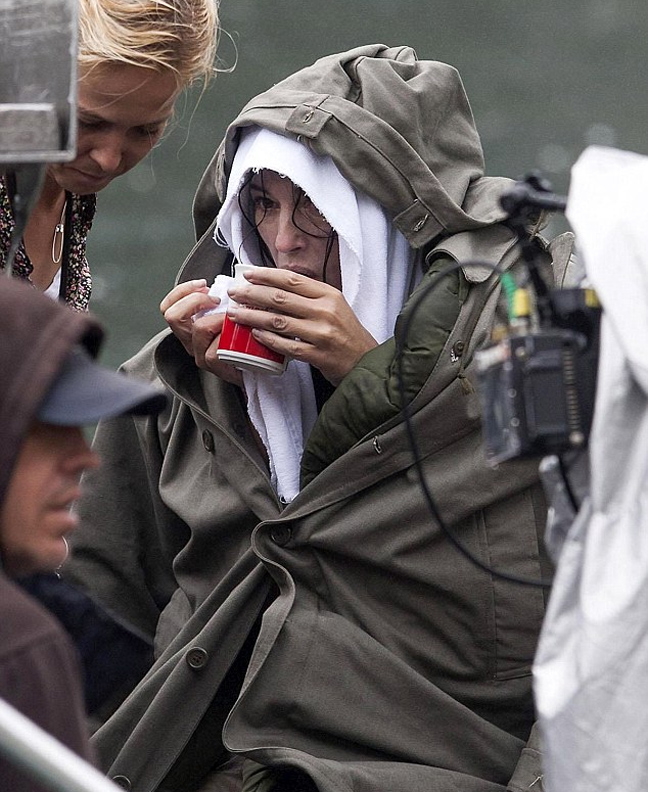 Μάλιστα η 48χρονη ηθοποιός φάνηκε να έχει ανάγκη από λίγη ζεστασιά μετά τα γυρίσματα των σκηνών αν κρίνουμε από το ζεστό ρόφημα που ήπιε.