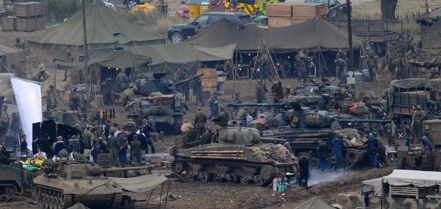 Στα εξωτερικά γυρίσματα που έλαβαν χώρα τη Δευτέρα, συμμετείχαν εκατοντάδες μέλη της παραγωγής, μεταξύ των οποίων ο Brad Pitt και ο συμπρωταγωνιστής του Shia LaBeouf.