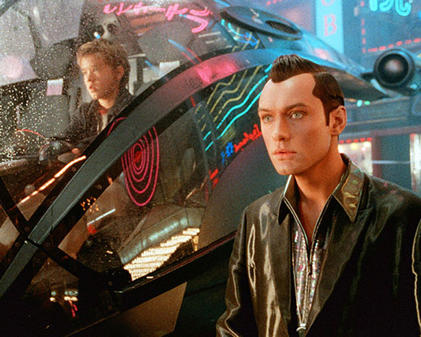 Ο Gigolo Joe, τον οποίο υποδύεται ο Jude Law, φορά ένα χαρακτηριστικό δερμάτινο, γυαλιστερό μπουφάν, ενώ τα μαλλιά του είναι σαν… βαμμένα με μαρκαδόρο επάνω στο κεφάλι του.