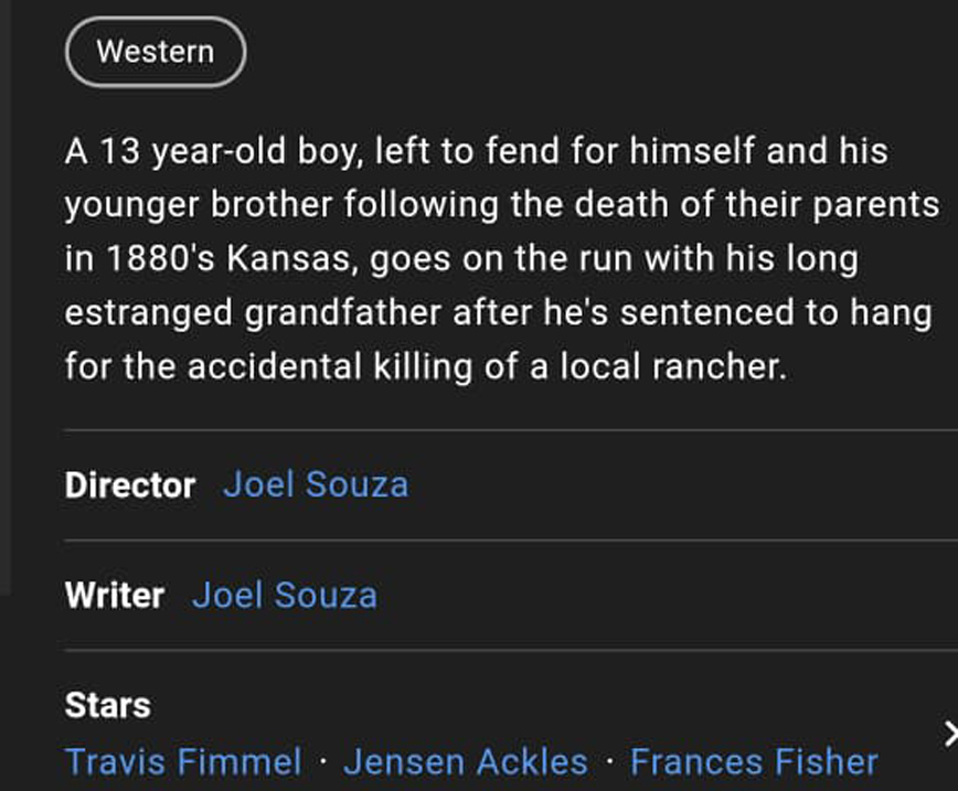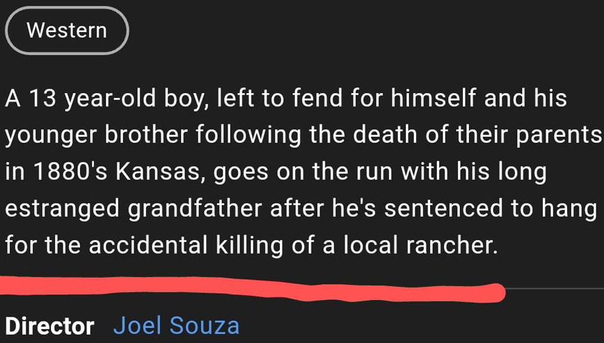 H ιστορία της ταινίας αφορά ένα 13χρονο παιδί πίσω στο 1880 το οποίο μένει μόνο του να φροντίσει τον εαυτό του και τον μικρό του αδερφό μετά τον θάνατο των γονιών του. Ο μικρός εξαφανίζεται μαζί με τον παππού του ο οποίος είχε καταδικαστεί σε απαγχονισμό για την άθελά του, δολοφονία ενός ντόπιου ιδιοκτήτη ράντσου.
