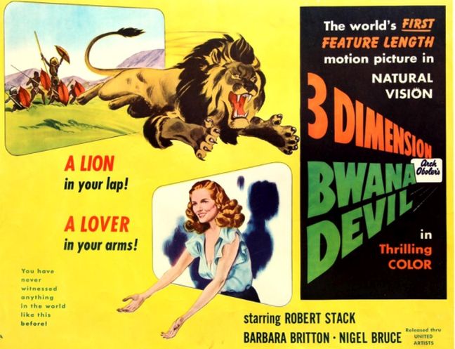 Όταν κυκλοφόρησε η ταινία Bwana Devil, όλο το marketing στηρίχτηκε στο γεγονός πως ήταν το πρώτο τρισδιάστατο έγχρωμο φιλμ. Η καινοτομία αυτή όμως δεν συνίστατο στη χρήση των κόκκινων και μπλε γυαλιών που γνωρίσαμε τα μεταγενέστερα χρόνια. Ο τρόπος δημιουργίας τους ήταν χρησιμοποιώντας διαφορετικά ρολά φιλμ. Αυτό βέβαια είχε σαν αποτέλεσμα να δημιουργεί πονοκεφάλους σε όποιον δεν καθόταν στα κεντρικά καθίσματα του σινεμά με αποτέλεσμα η προσπάθεια να μην στεφθεί με την αναμενόμενη επιτυχία.