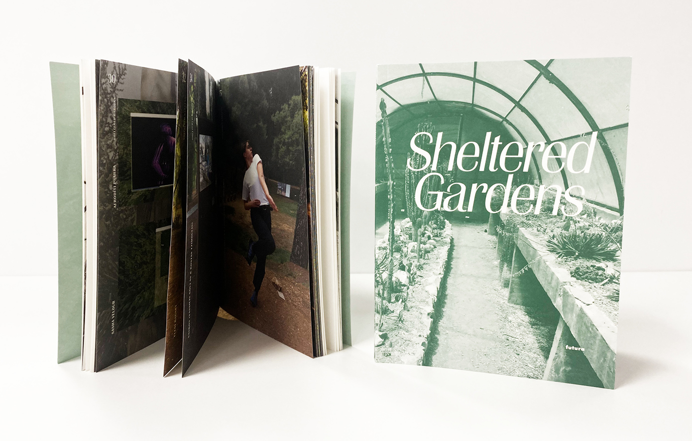 Ο κατάλογος Sheltered Gardens κυκλοφορεί από τις εκδόσεις Futura και περιλαμβάνει πρωτότυπα κείμενα, δοκίμια και ποιήματα από τους Κίκα Κυριακάκου, Chris Kraus, Selina Nwulu, Φοίβη Γιαννίση, Φαίη Ζήκα, I broke the vase, VASKOS (Βασίλης Νούλας & Κώστας Τζιμούλης) και Δήμητρα Ιωάννου, αφιερωμένα στους κήπους-καταφύγια, τα οικοσυστήματα και τις προβληματικές που αναδεικνύονται στους σύγχρονους γυναικείους κήπους, καθώς και πλούσιο, έγχρωμο, φωτογραφικό υλικό από το εικαστικό πρόγραμμα στον Βοτανικό Κήπο Διομήδους.