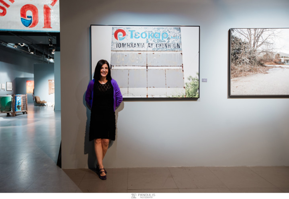Η εικαστικός σκηνοθέτησε και σκηνογράφησε στον χώρο του Κέντρου Πολιτισμού «Ελληνικός Κόσμος» τον μνημονικό κόσμο της δικής της Teocar εντάσσοντας ενθυμήματα τεράστιων διαστάσεων όπως η αυθεντική πινακίδα του εργοστασίου, το κάγκελο της εισόδου, κιβώτια συσκευασίας ανταλλακτικών προς συναρμολόγηση ως ready made θραύσματα αναμνήσεων, ως οιωνοί κιβωτό του δυναμικού παρελθόντος.