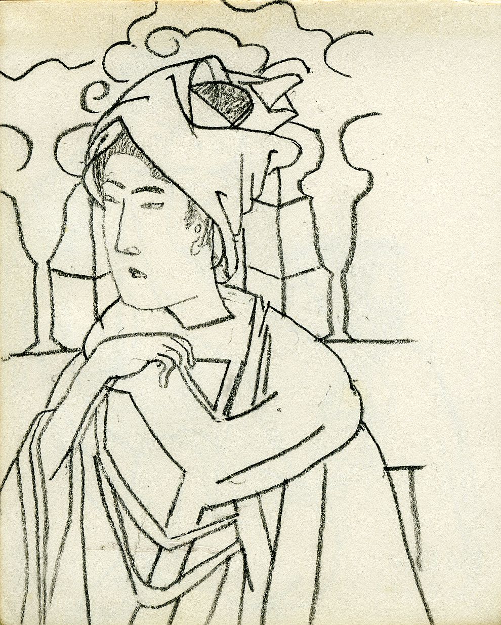 Επίσης, σε ένα ειδικά διαμορφωμένο σκηνικό εμπνευσμένο από την Άπω Ανατολή αναδεικνύονται έργα τέχνης και αντικείμενα ασιατικής προέλευσης που είχε συλλέξει ο καλλιτέχνης και μια σειρά από σχέδια-αντίγραφα του Γκίκα από την κινέζικη και την ιαπωνική τέχνη, τα περισσότερα από τα οποία χρονολογούνται από το 1938 μέχρι το 1961.