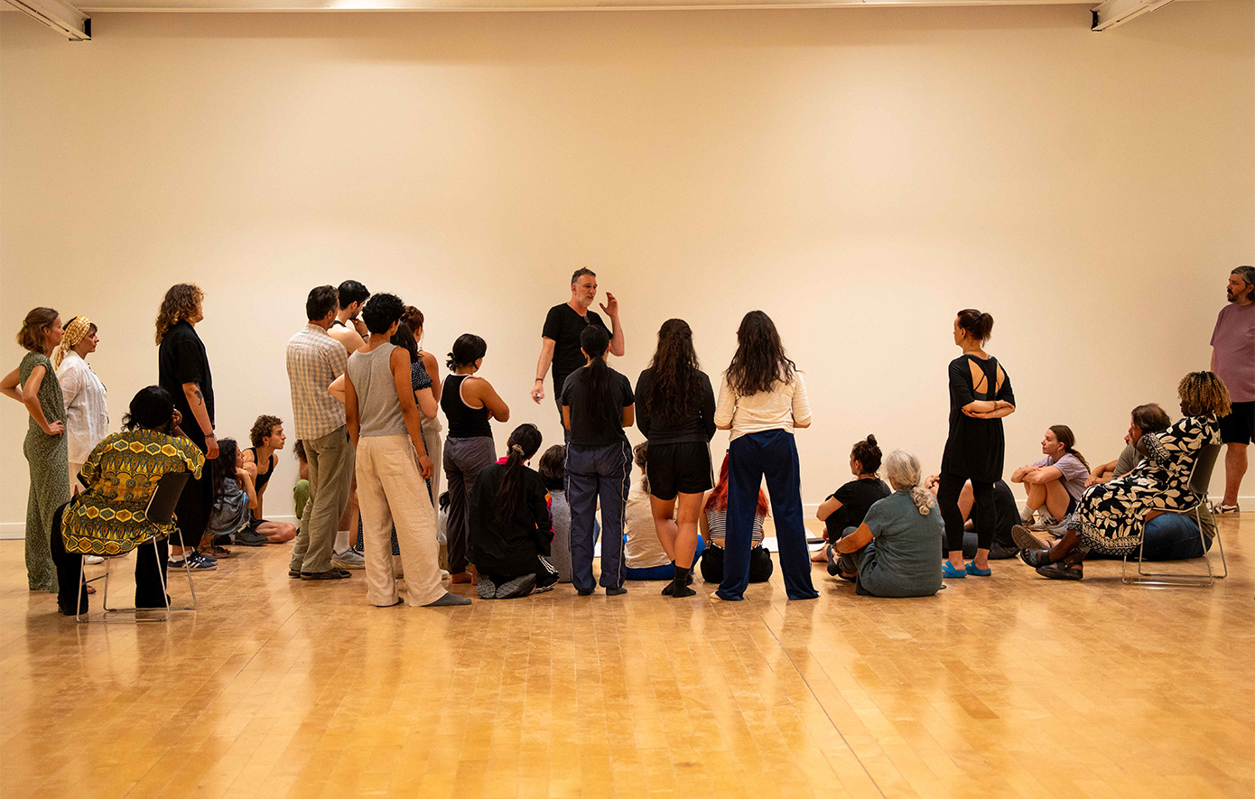 Οι συμμετέχοντες καλούνται να μπουν σε έναν κοινό χώρο χωρίς λόγια, χωρίς κινητά, χωρίς διαλείμματα. Μόνο με το σώμα και τις αισθήσεις, καλούνται να συνυπάρξουν, να κινηθούν και να παρατηρήσουν, χωρίς προκαθορισμένο στόχο ή ρόλο. Πρόκειται για μια «κοινωνική χορογραφία» που αποδομεί συνήθειες, ρόλους και στερεότυπα.