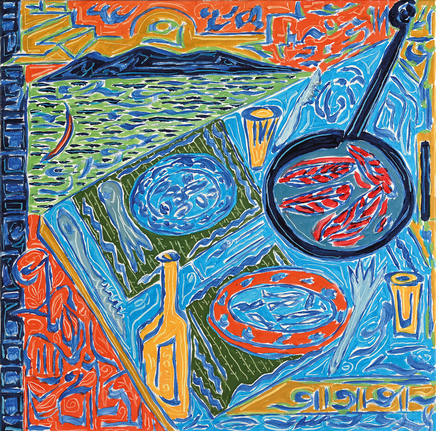Η ζωγραφική του Καστρινάκη είναι η απεικόνιση της ζωής και της προσωπικότητάς του, χωρίς όμως να είναι αυτοαναφορική. Στα έργα του θα συναντήσουμε και τις δικές μας στιγμές, θα δούμε εικόνες που και εμείς έχουμε αντικρίσει, ταξίδια που και εμείς έχουμε ονειρευτεί. Εν ολίγοις, είναι η αποθέωση μιας ιδανικής καθημερινότητας φτιαγμένης με υλικά ταπεινά, αλλά αγαπημένα. Οι φανταστικές ζωγραφικές συνθέσεις του Καστρινάκη χαρακτηρίζονται από έντονα κορεσμένα χρώματα και μια «αφελή» οπτική γλώσσα. Αυτή η αισθητική επιλογή είναι σκόπιμη και αντανακλά μια συνειδητή αντίσταση στην ακαδημαϊκή τελειότητα και στην οπτική ψευδαίσθηση υπέρ της άμεσης και πηγαίας έκφρασης. Τα έργα του γιορτάζουν τόσο τη χαρά της ζωής όσο και τη χαρά της ίδιας της ζωγραφικής. Για τον Καστρινάκη, η ζωγραφική είναι αυτοσκοπός: μια δραστηριότητα που παράγει νόημα μέσα από την ίδια της την εκτέλεση.