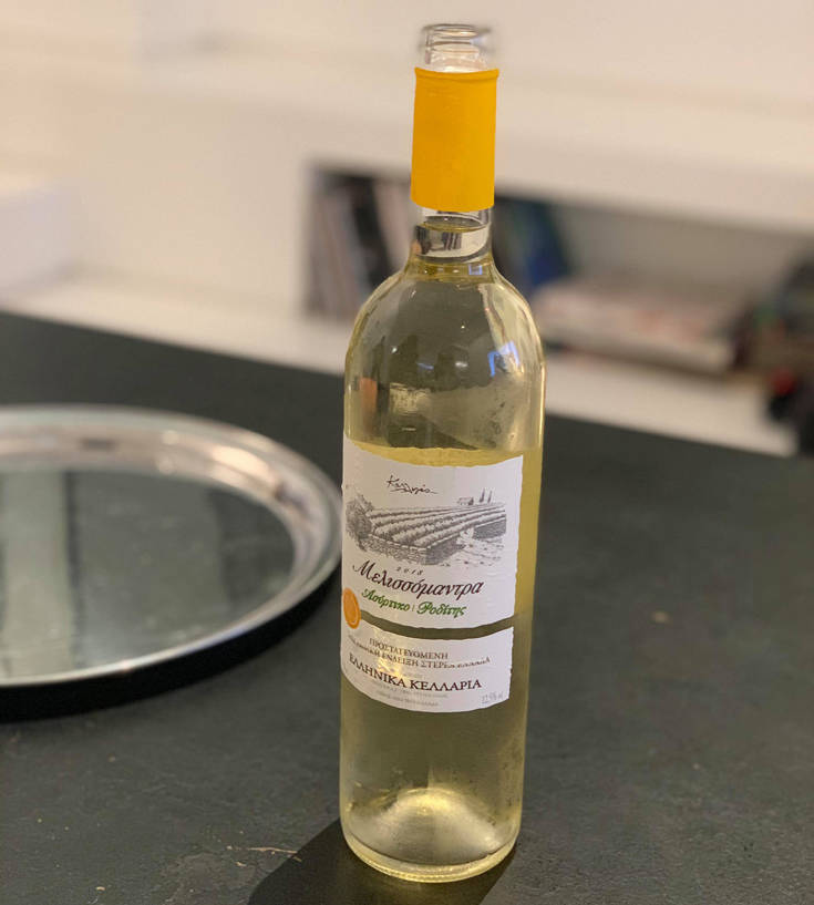 Ο λευκός οίνος Μελισσόμαντρα-Καλλιγά, των μοναδικών ποικιλιών Ασύρτικο και Ροδίτης, είναι ένα κρασί με χρυσοκίτρινες ανταύγειες και γεμάτη, μεστή γεύση με τόνους λεμονιού και πορτοκαλιού. Αποτέλεσε τον ιδανικό σύντροφο για την έναρξη αυτής της καλλιτεχνικής έκθεσης.