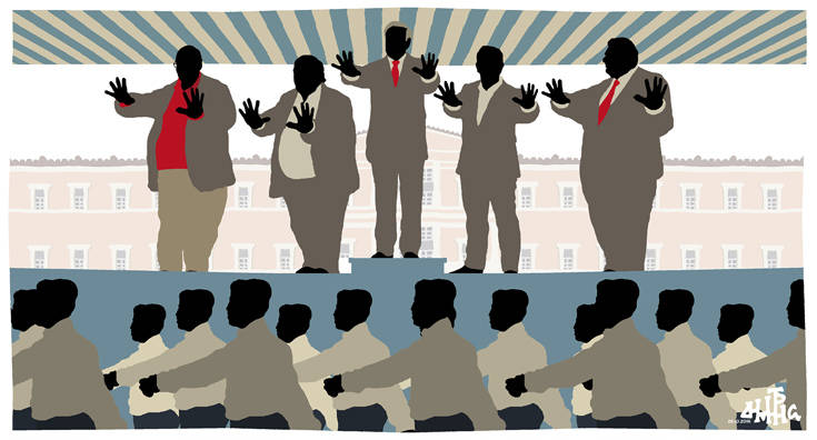 Κλείνοντας μια πολιτική περίοδο της χώρας και πριν αρχίσει η επόμενη, ο αγαπημένος γελοιογράφος της «ΚΑΘΗΜΕΡΙΝΗΣ» Δημήτρης Χαντζόπουλος παρουσιάζει μια επιλεγμένη σειρά πολιτικών γελοιογραφιών με καυστικό χιούμορ από τα πολιτικά και τα κοινωνικά γεγονότα που στιγμάτισαν την Κρίση και τα μνημόνια της τετραετίας που πέρασε.