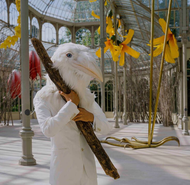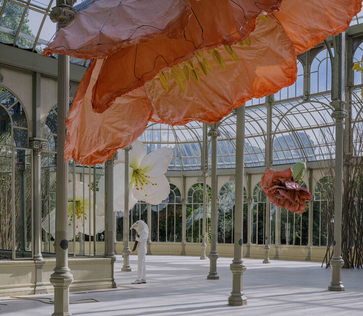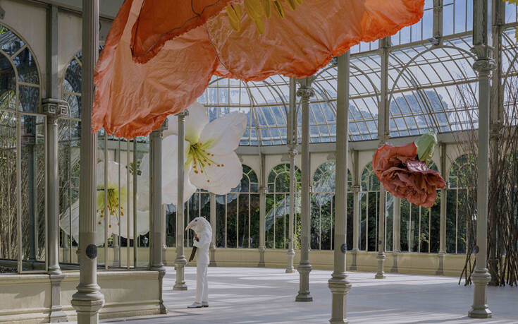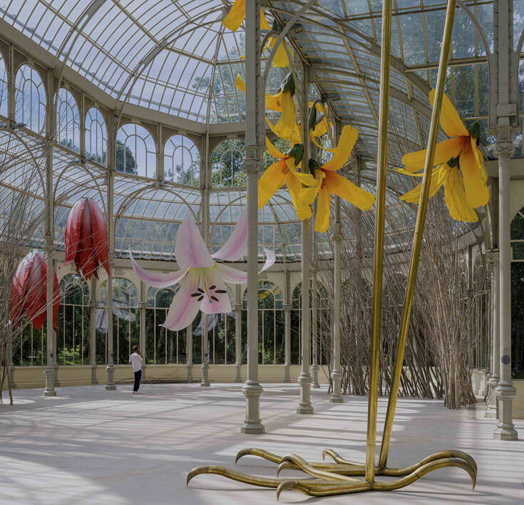 Η εγκατάσταση, της οποίας ο πλήρης τίτλος είναι «Σε ένα κοράκι και στους τυφώνες που ξαναφέρνουν μυρωδιές ερωτευμένων από άγνωστους τόπους», είναι μια μεταφορική φωλιά που συνδέει το εσωτερικό με το εξωτερικό του Palacio de Cristal, εξηγεί το ΑΠΕ.