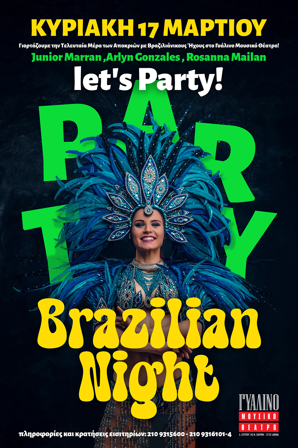 Την τελευταία μέρα των Αποκριών, λοιπόν, περιμένουν το κοινό στο Γυάλινο Μουσικό Θέατρο βραζιλιάνικοι ήχοι σε μια βραδιά γεμάτη χρώματα, ρυθμούς και ενθουσιασμό. Ένα μοναδικό πάρτι την Κυριακή 17 Μαρτίου με πρωταγωνιστές εξαιρετικούς εκπροσώπους της λάτιν μουσικής.