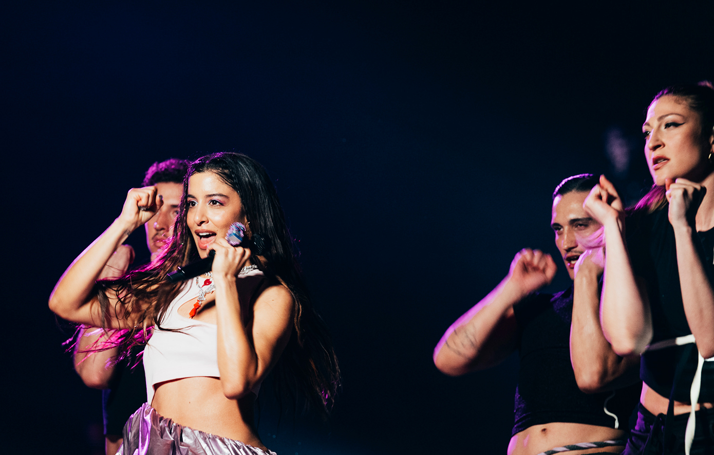 Ο έντονος χορευτικός ρυθμός, οι γρήγορες εναλλαγές επί σκηνής, η ευρηματική σκηνική παρουσία και τα εντυπωσιακά γραφικά αποτελούν μερικά από τα βασικά συστατικά της εμφάνισης της Ελλάδας.