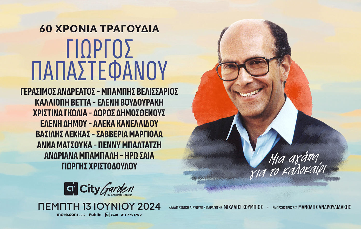 Το CT Garden σηκώνει φέτος αυλαία, την Πέμπτη 13 Ιουνίου με ένα μεγάλο αφιέρωμα στα 60 χρόνια της στιχουργικής διαδρομής του Γιώργου Παπαστεφάνου.