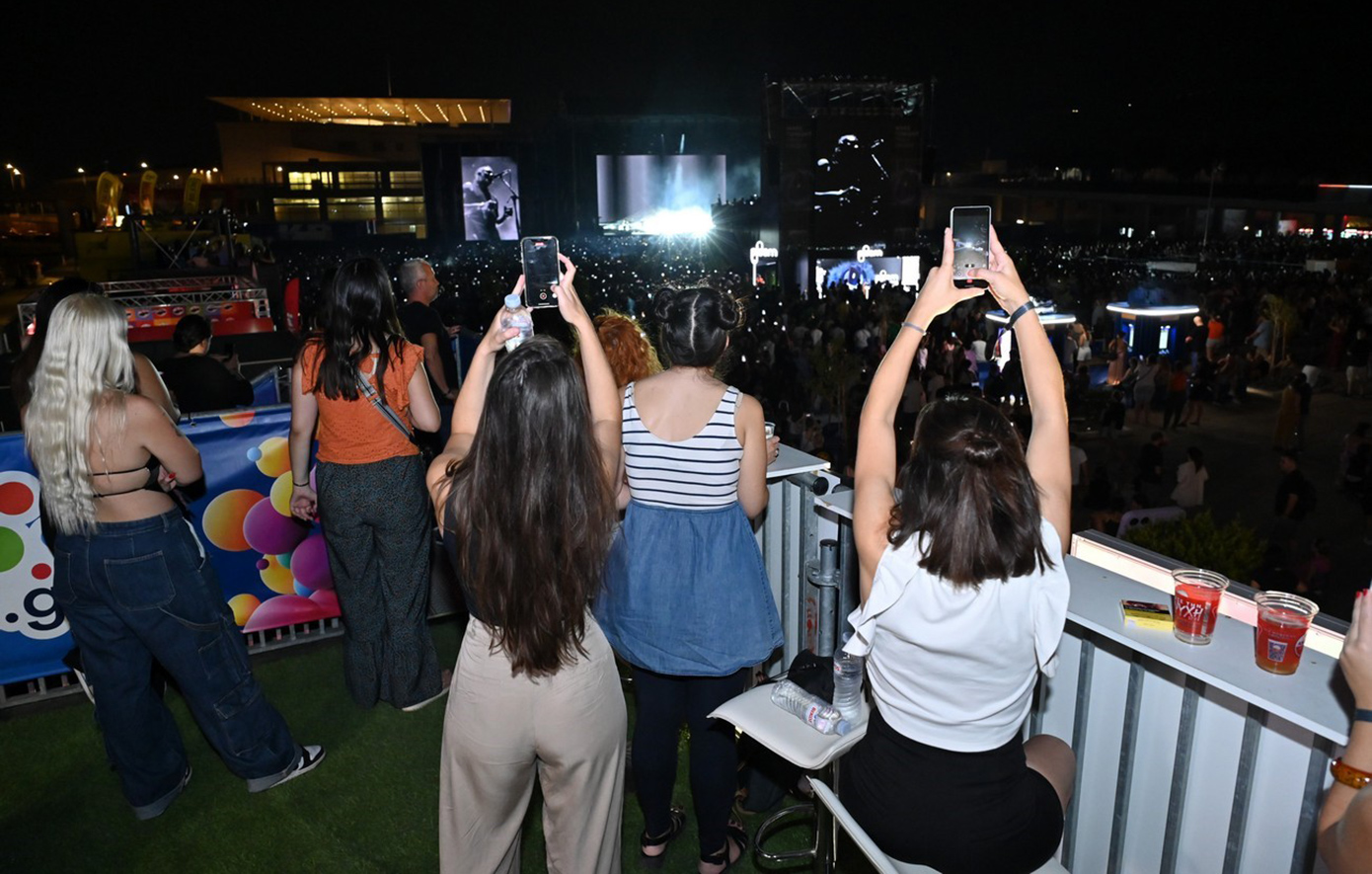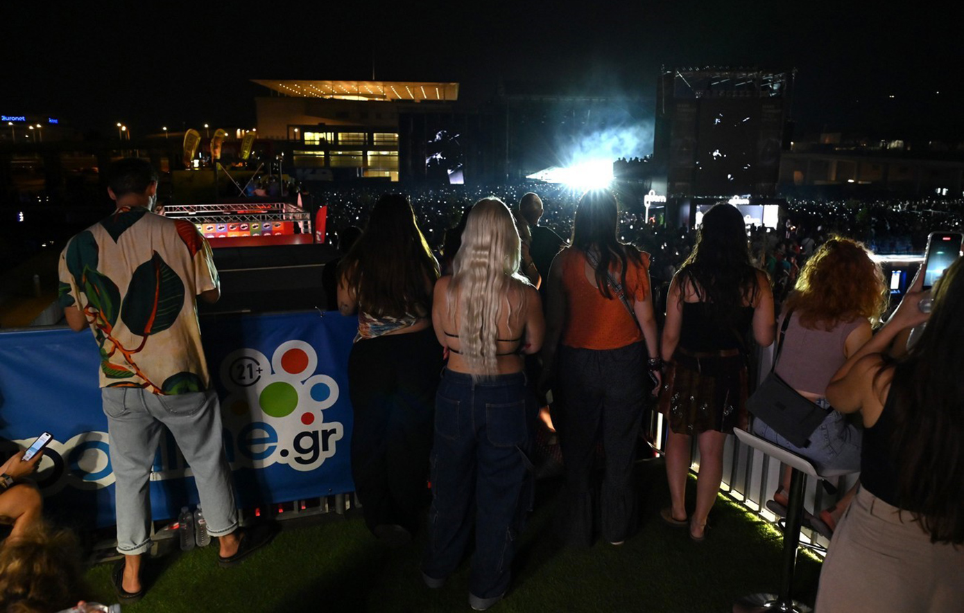 Όταν ανεβήκαμε στο VIP μπαλκόνι του opaponline.gr, νιώσαμε την πολυτέλεια του να απολαμβάνεις μία συναυλία από μια προνομιακή θέση. Η πανοραμική θέα της πλατείας Νερού μας επέτρεψε να δούμε το ενθουσιώδες πλήθος και να νιώσουμε την ενέργεια που διαπερνούσε τον χώρο.