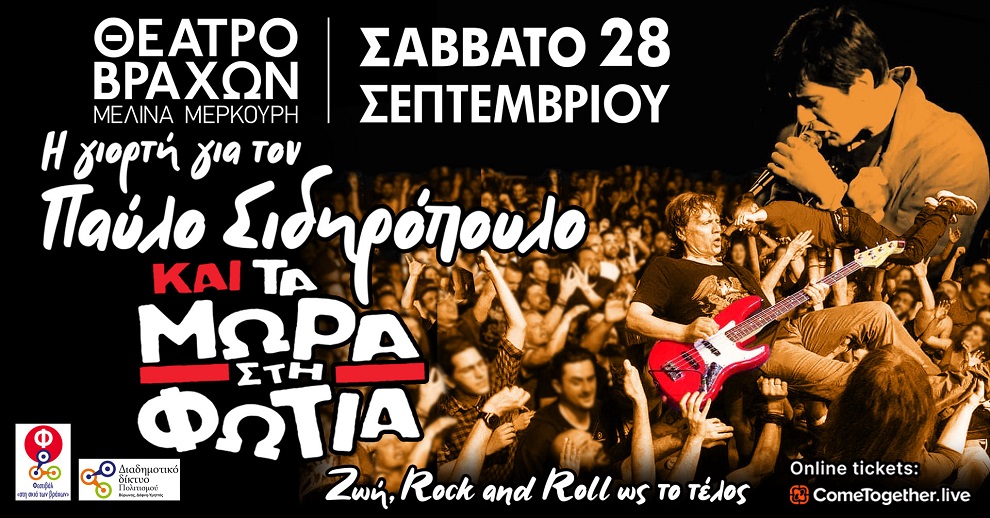 Το βράδυ του Σαββάτου (28 Σεπτεμβρίου) στον επιβλητικό χώρο του Θεάτρου Βράχων, δύο θρυλικές μπάντες – σύμβολο, ο Στέλιος Σαλβαδόρ & τα Μωρά στη Φωτιά και η «Γιορτή για τον Παύλο Σιδηρόπουλο» θα τραγουδήσουν για όλα αυτά που γνωρίζει η καρδιά και χαράχτηκαν στο πνεύμα!