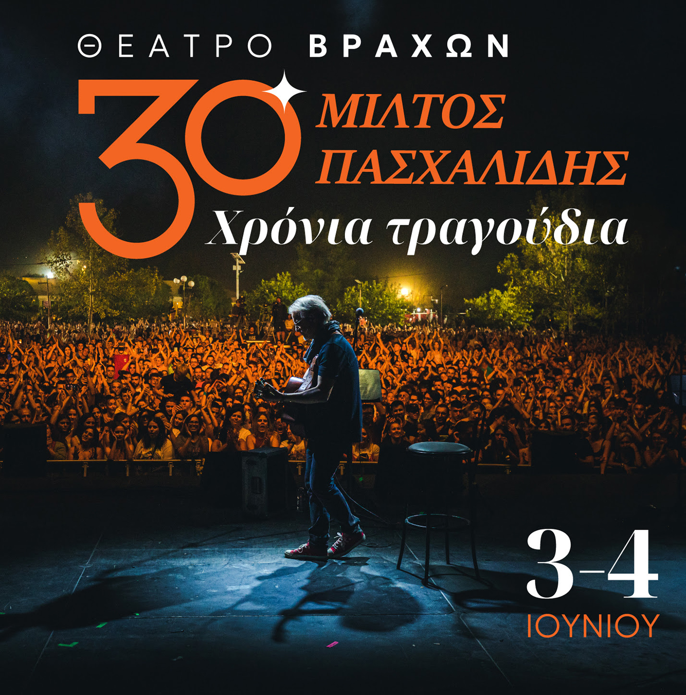 Φέτος, ο Μίλτος Πασχαλίδης κλείνει τριάντα χρόνια προσωπικής δισκογραφίας και τα γιορτάζει με το κοινό του με δύο συναυλίες στο αγαπημένο του καλοκαιρινό στέκι, το Θέατρο Βράχων. Μαζί του αγαπημένοι φίλοι τραγουδιστές που συναντήθηκαν και συμπορεύτηκαν όλα αυτά τα χρόνια.