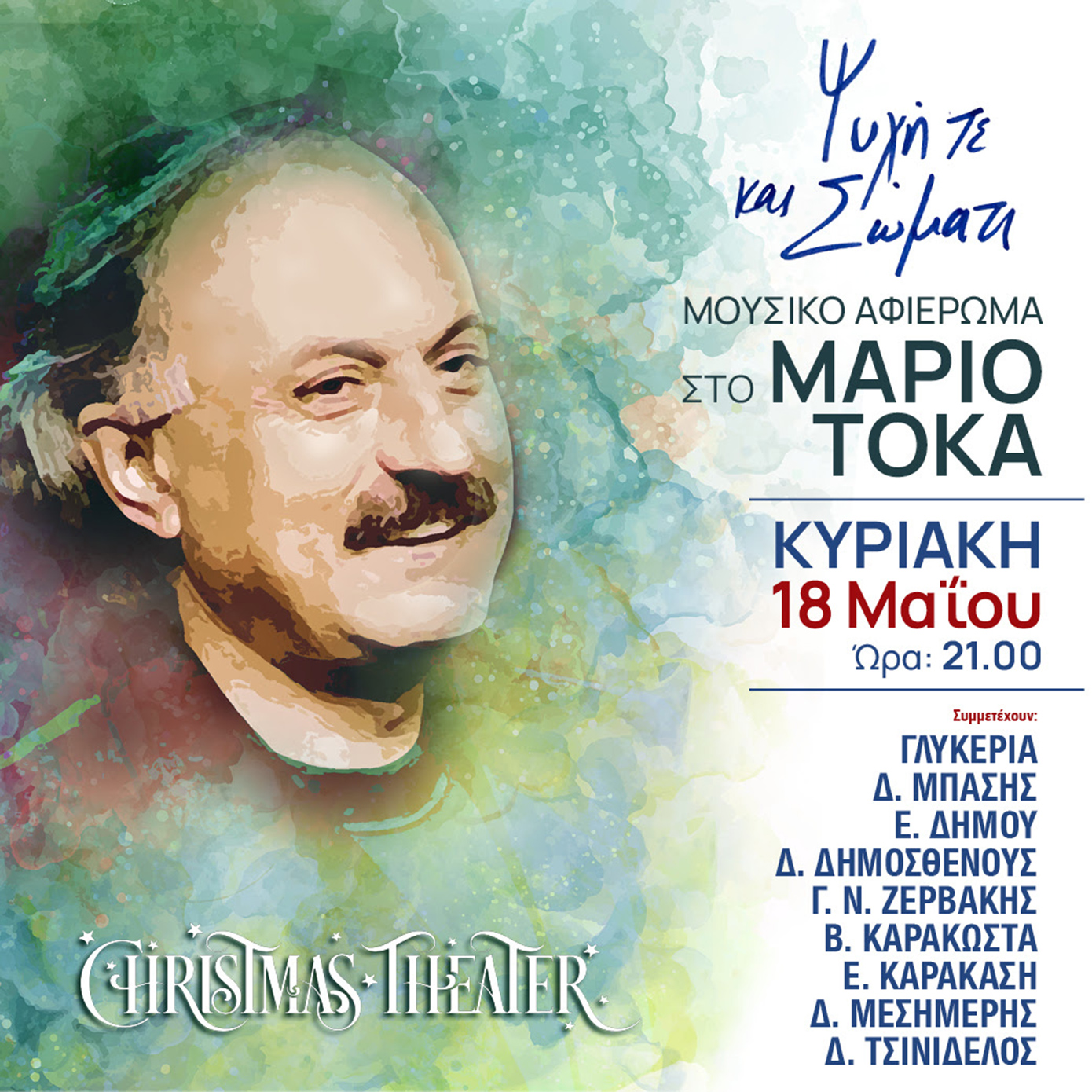 Μια ξεχωριστή μουσική βραδιά αφιερωμένη στον Μάριο Τόκα, τον σπουδαίο δημιουργό που σφράγισε με τις μελωδίες του το ελληνικό τραγούδι έρχεται την Κυριακή 18 Μαΐου στο Christmas Theatre.