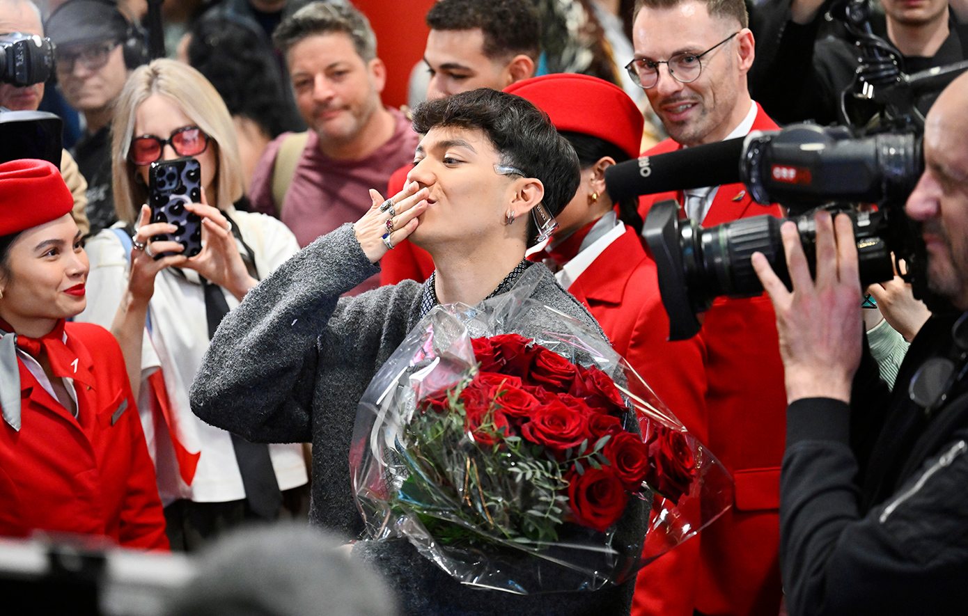 Εκατοντάδες θαυμαστές κατέκλυσαν το αεροδρόμιο της Βιέννης για να υποδεχθούν τον Αυστρο-Φιλιππινέζο καλλιτέχνη JJ που κατάφερε να κατακτήσει το πολυπόθητο τρόπαιο του 69ου διαγωνισμού της Eurovision για την Αυστρία με το τραγούδι «Wasted Love».