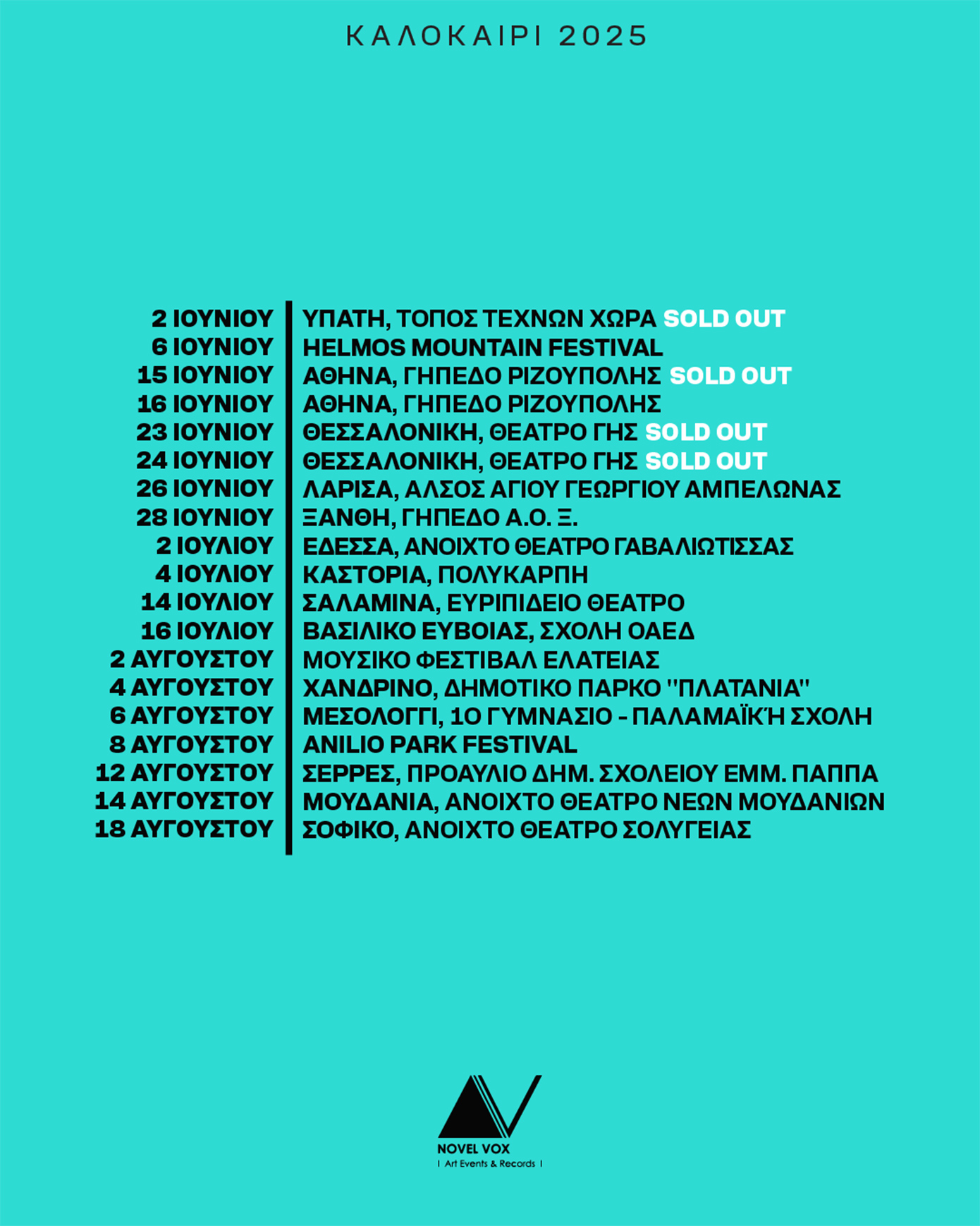 Με την έναρξη του Ιουλίου σημειώνουμε το νέο καλοκαιρινό πρόγραμμα και δίνουμε ραντεβού με τον Σωκράτη Μάλαμα στην επόμενη πόλη, στην επόμενη μεγάλη συναυλία, όπου κι αν βρεθούμε αυτό το καλοκαίρι!
