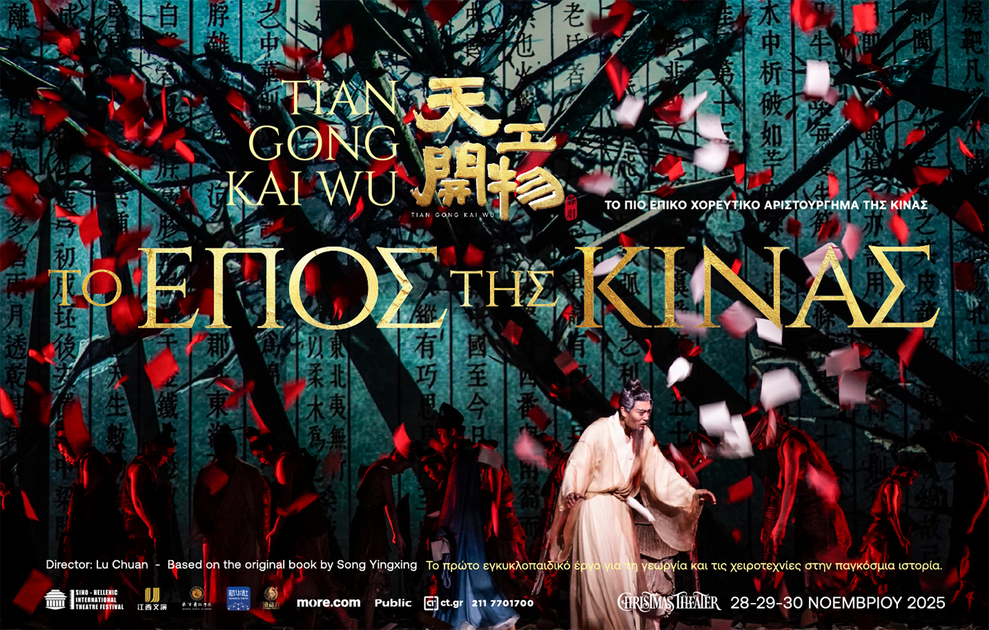 Το κινεζικό επικό χοροθέατρο «Το έπος της Κίνας – Tiangong Kaiwu Dance Drama» θα παρουσιαστεί για πρώτη φορά στην Ελλάδα, στη σκηνή του Christmas Theater, με τέσσερις παραστάσεις, από τις 28 έως τις 30 Νοεμβρίου 2025.