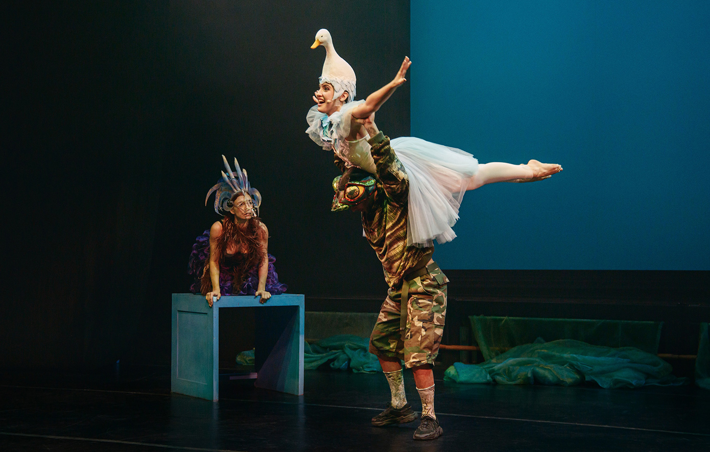 Με σαφείς αναφορές στην πρωτοπόρο του σύγχρονου χορού, την «ξυπόλυτη χορεύτρια» Ιζαντόρα Ντάνκαν, καθώς και σε κλασικά παραμύθια όπως το Ασχημόπαπο του Χανς Κρίστιαν Άντερσεν, η ηρωίδα της παράστασης, η μικρόσωμη πάπια Ιζαντόρα Ντακ με τα πανέμορφα, μοναδικά μπλε φτερά, ζει στη Λίμνη των κύκνων και προσπαθεί να πραγματοποιήσει το όνειρό της: να γίνει μπαλαρίνα.