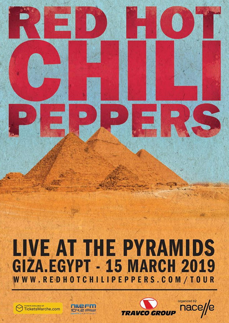 Οι θρύλοι της funk/alternative rock Red Hot Chili Peppers (RHCP) ανακοίνωσαν ότι θα δώσουν συναυλία μπροστά από τις Πυραμίδες της Γκίζας στην Αίγυπτο, στις 15 Μαρτίου.