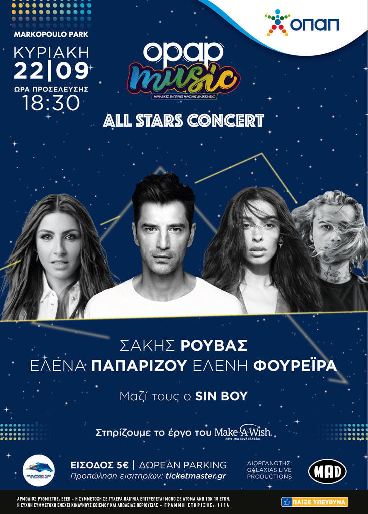 Τέσσερις αστέρες της ελληνικής μουσικής σκηνής ενώνουν τις δυνάμεις τους, την Κυριακή 22 Σεπτεμβρίου, σε μια μοναδική συναυλία από τον ΟΠΑΠ στον ιππόδρομο Αθηνών, Markopoulo Park.