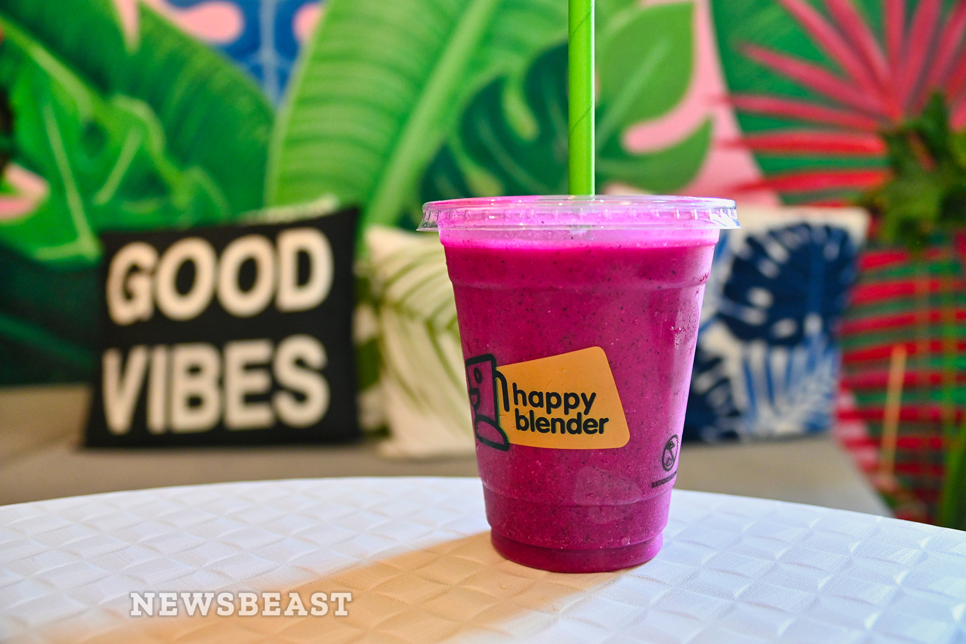 Το «Happy Blender» είναι ένα χαρούμενο, πολύχρωμο, τροπικό healthy food spot σε μία περιοχή που όλοι έχουμε συνδέσει με το σουβλάκι, τον μουσακά και τη χωριάτικη σαλάτα (να κολυμπά στο λάδι)… Έξω από τα συνηθισμένα της περιοχής, λοιπόν, εκείνο μάς μαθαίνει να τρώμε σωστά και υγιεινά, χωρίς να κάνουμε καμία έκπτωση στην ποιότητα και τη γεύση.