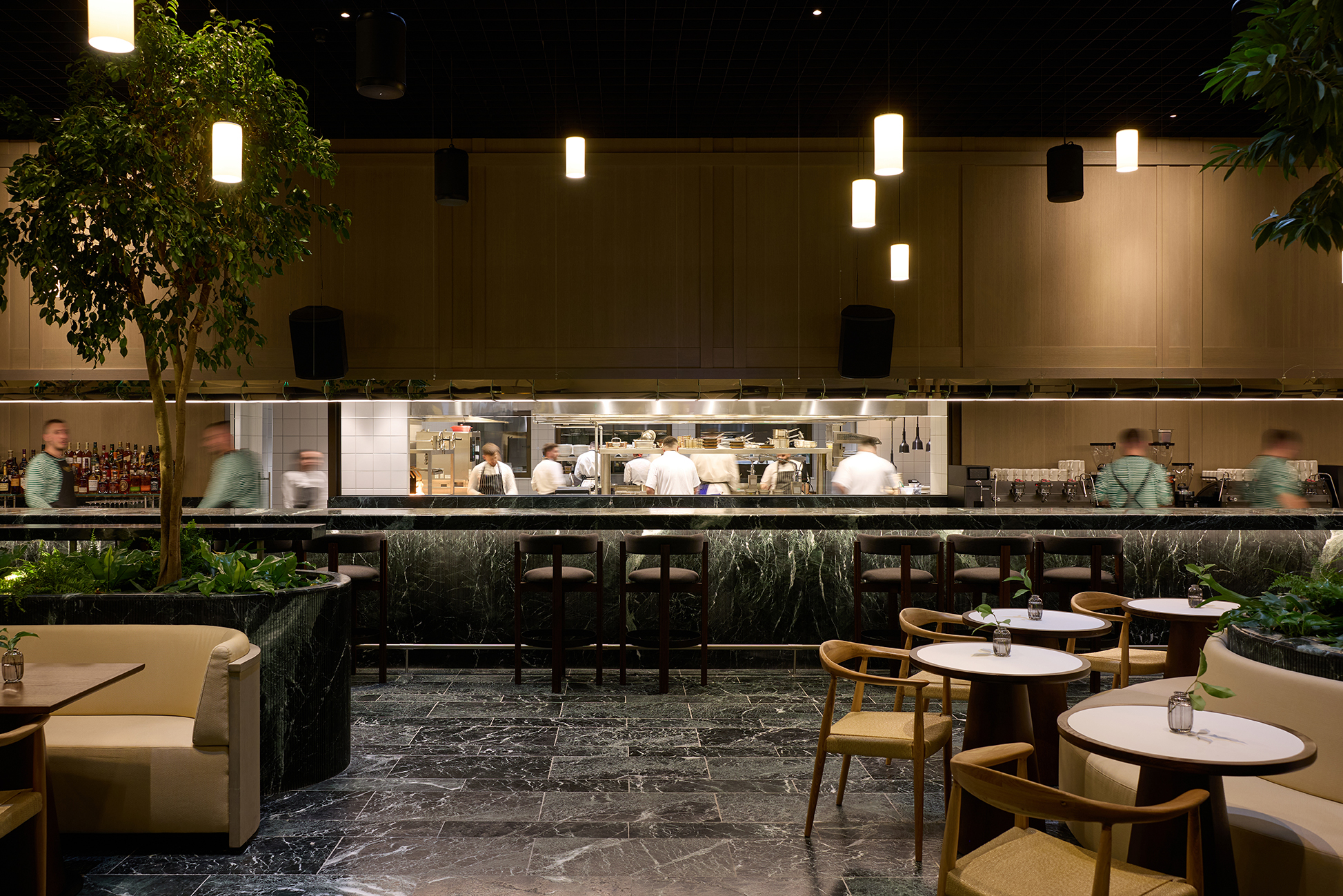 Το πρωί, λοιπόν, στις ήσυχες γωνιές της, μπορείς να απολαύσεις σε ένα όμορφο σκηνικό τον καφέ σου, υγιεινούς χυμούς, adaptogenic lattes και δυναμωτικά αναψυκτικά φυσικής ζύμωσης. Το μεσημέρι, ο χώρος μετατρέπεται σε γαστρονομικό στίβο με business meetings που εξελίσσονται πάνω από δυναμωτικά quinoa burgers και αυθεντικά cacio e pepe, ενώ αργά το απόγευμα και το βράδυ, η 20 μέτρων μπάρα γίνεται το επίκεντρο της νυχτερινής Αθήνας και σημείο συνάντησης είτε για after office aperitivi, μικροζυθοποιίες και cocktails, είτε για βραδινή έξοδο για δείπνο με ζουμερά Entrecote, ετικέτες του ελληνικού και διεθνούς Αμπελώνα και tailor made μουσικές επιλογές με καθημερινούς free style DJs.