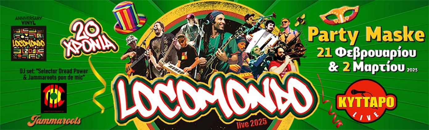 Ετοιμαστείτε, λοιπόν, για… ένα πολύχρωμο πανδαιμόνιο χορού τραγουδιού και τρέλας, με τους Locomondo στη σκηνή να γιορτάζουν 20+ χρόνια και να «εκτοξεύουν»… σερπαντίνες και όλα τα λατρεμένα τους τραγούδια στον αέρα..!!